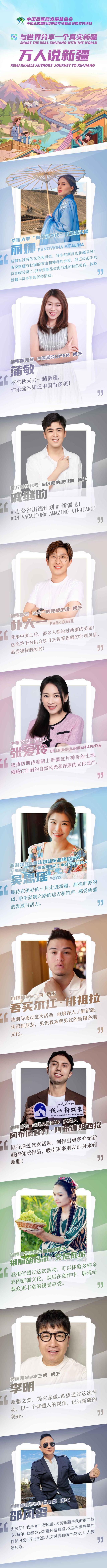 #萬(wàn)人說(shuō)新疆# 優(yōu)秀作者新疆行活動(dòng)將于10月8日在大美新疆開(kāi)啟,五湖四海的“萬(wàn)人說(shuō)新疆”短視頻大賽獲獎(jiǎng)作者代表、中央和新疆新聞網(wǎng)站采編骨干、中外網(wǎng)絡(luò)達(dá)人等將齊聚新疆,講述真實(shí)新疆的故事。來(lái)自俄羅斯、韓國(guó)、泰國(guó)等多個(gè)國(guó)家的網(wǎng)絡(luò)達(dá)人對(duì)此行充滿(mǎn)期待,一起來(lái)聽(tīng)聽(tīng)他們的心聲……#大V說(shuō)大美新疆# #大美新疆尋寶記#