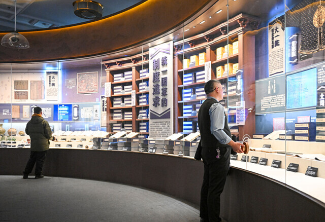 ▲2023年12月23日,參觀者在鑄牢中華民族共同體意識文物古籍展上參觀。展覽分為大一統(tǒng)、大交融、大團結(jié)三個單元,共展出1500余件珍貴文物古籍。 新華社記者 郝建偉 攝