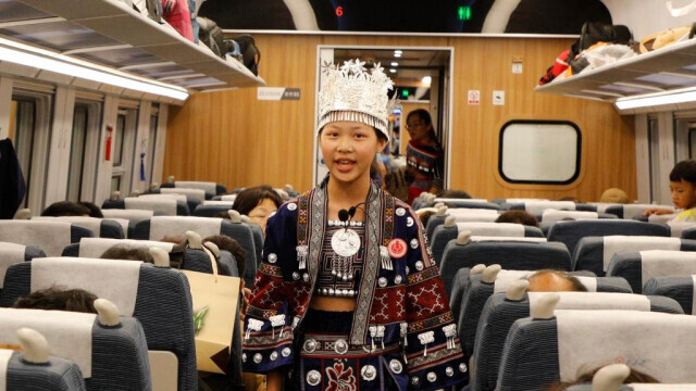 ▲金秋九月,云南寧洱哈尼族彝族自治縣的青少年宣講團,在中老鐵路寧洱至昆明路段宣講民族團結(jié)誓詞碑故事。新華社發(fā)