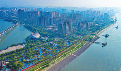 岸綠景美,水生態(tài)環(huán)境持續(xù)復(fù)蘇。水清河暢,2023年長江干支流水質(zhì)評價總體為優(yōu),Ⅰ至Ⅲ類水質(zhì)斷面占98.5%。長江干流涉嫌違法違規(guī)的2441個岸線利用項目均完成整改,共騰退岸線長度162公里。魚翔淺底,2023年長江流域監(jiān)測到土著魚類227種,比2022年增加34種,長江“十年禁漁”行動對恢復(fù)水生生物多樣性起到明顯效果。節(jié)水優(yōu)先,長江流域萬元GDP用水量由2017年的70.0立方米下降至2022年的49.1立方米。