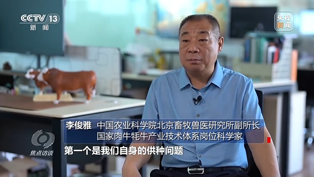 中國(guó)農(nóng)業(yè)科學(xué)院北京畜牧獸醫(yī)研究所副所長(zhǎng)、國(guó)家肉牛牦牛產(chǎn)業(yè)技術(shù)體系崗位科學(xué)家 李俊雅:“核心種源依然依靠進(jìn)口,存在很多問(wèn)題,一是我們自身的供種問(wèn)題,在特殊時(shí)期,如果我們不能從國(guó)外進(jìn)口相應(yīng)的優(yōu)秀種質(zhì),我該怎么做;另外,我們引的這些國(guó)外的品種基本上都不是本品種的最優(yōu)秀種?;蛘叻N牛的凍精。我們必須要培育出滿足我們國(guó)家主流市場(chǎng)供給型的品種。