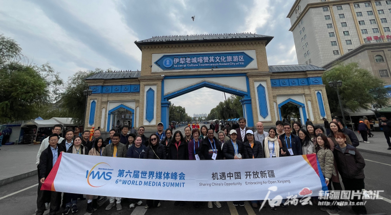 10月15日下午,部分參加第六屆世界媒體峰會的外媒代表抵達伊寧市,他們參觀訪問了喀贊其民俗旅游區(qū)、六星街景區(qū)等地。