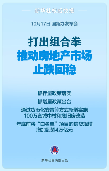 17日,國新辦發(fā)布會引起市場高度關(guān)注。住房城鄉(xiāng)建設部、財政部、自然資源部、中國人民銀行、國家金融監(jiān)督管理總局五部門有關(guān)負責人齊亮相,推出增量舉措,落實存量政策,打出一套組合拳,推動房地產(chǎn)市場止跌回穩(wěn)。