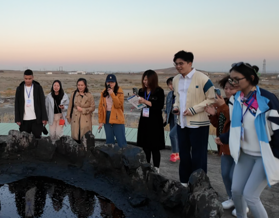 在黑油山最著名的景點——“跳跳泉油池”,黑油山景區(qū)講解員麥爾哈巴·肉扎洪帶領訪問團代表們利用壓力傳導作用,在它的周圍邊喊邊跳,眼見著它冒的泡泡越來越多,讓大家興奮不已。麥爾哈巴·肉扎洪說:“經(jīng)過三代人的努力,克拉瑪依變成了現(xiàn)在這樣宜居宜業(yè)宜游的現(xiàn)代化高品質(zhì)城市,希望可以把克拉瑪依艱苦創(chuàng)業(yè)的精神傳達給大家,也可以把這種活力傳達給大家?!?/p>