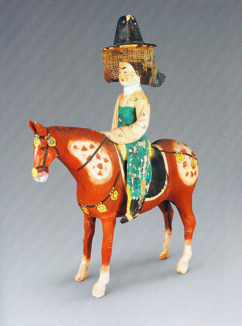 阿斯塔那古墓出土的唐代彩繪騎馬仕女泥俑。資料圖