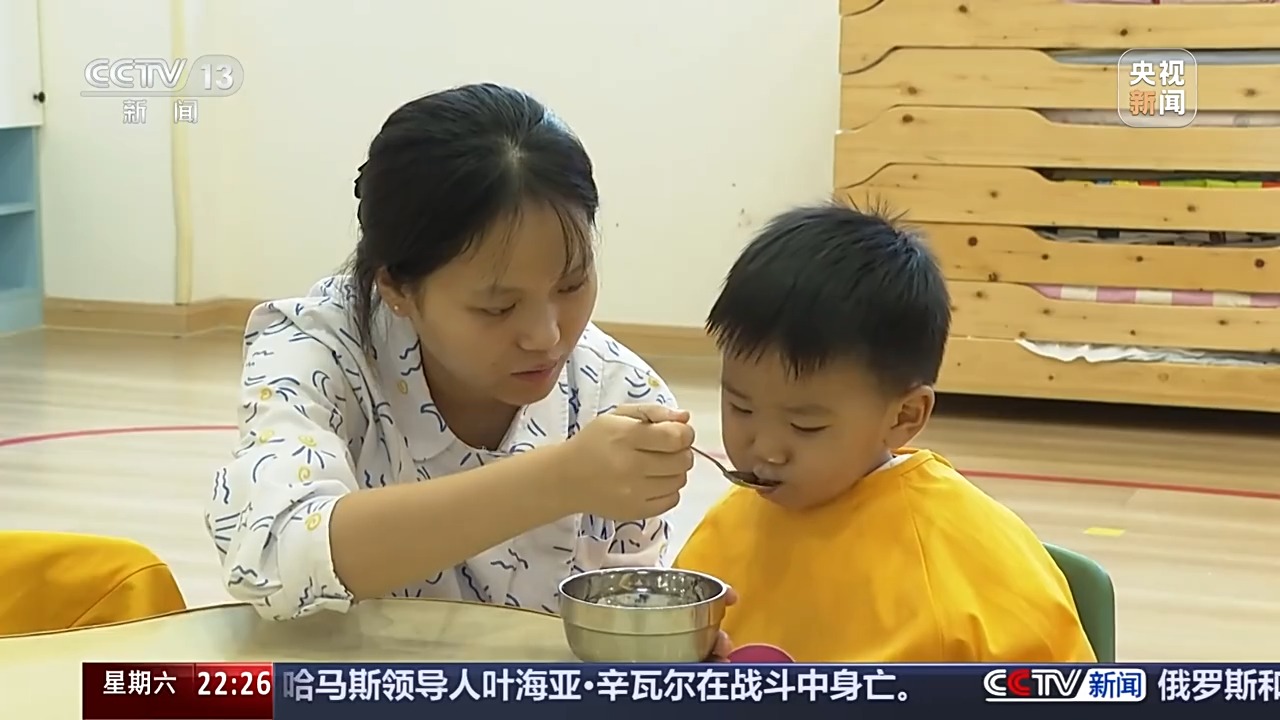 隨著晨檢的結(jié)束,孩子們便可以到食堂享用早餐。每周的食譜都會根據(jù)孩子生長發(fā)育的需求進(jìn)行調(diào)整。除了入園體檢,以及由營養(yǎng)師制定的食譜外,永川區(qū)婦幼保健院托育中心與其他傳統(tǒng)托育中心不同的是,配有醫(yī)師、推拿師、營養(yǎng)師、治療師、評估師等8師共育服務(wù)團(tuán)隊(duì),同時還定期為孩子們進(jìn)行生長監(jiān)測以及發(fā)育評估、五官保健等活動。