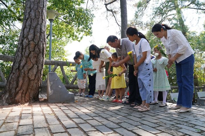 在江西省瑞金市葉坪鄉(xiāng)華屋村,村民在松樹(shù)下祭拜烈士(2022年9月17日攝)。新華社記者 周密 攝