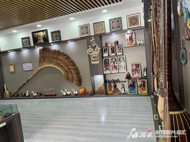 疏附縣托克扎克鎮(zhèn)阿亞格曼干村村委會里的手工藝品展示館,陳列著各種手工藝品。石榴云/新疆日報記者 拍熱扎提·阿不都攝