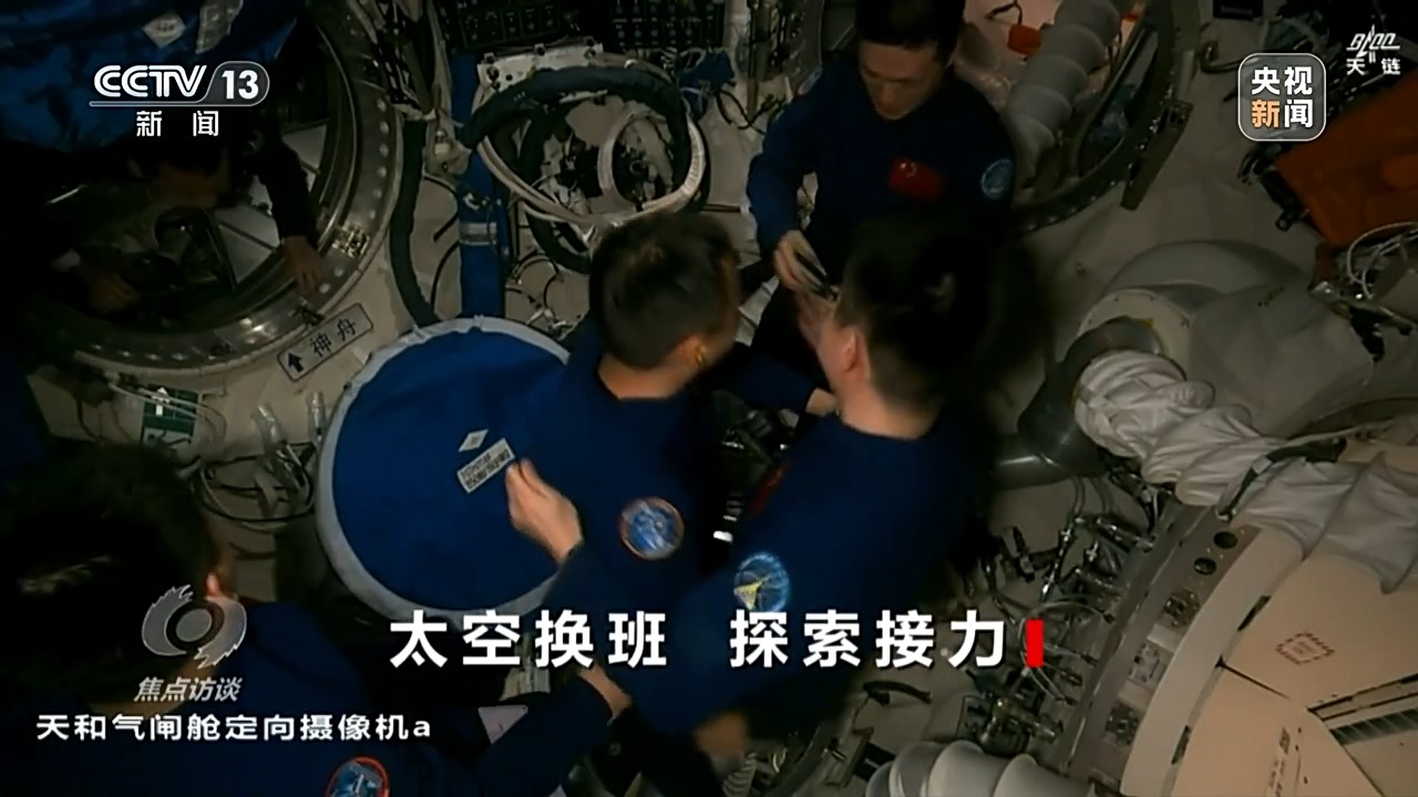 重返中國(guó)空間站的神十九航天員蔡旭哲打開艙門,再次體驗(yàn)失重,他輕松地就從飛船進(jìn)入空間站節(jié)點(diǎn)艙,和等待他們到來的神十八乘組來了一個(gè)大擁抱。第一次進(jìn)入空間站的兩位“90后”航天員也同樣受到了熱烈的歡迎。在打掃一新的空間站核心艙,歡迎儀式必不可少。
