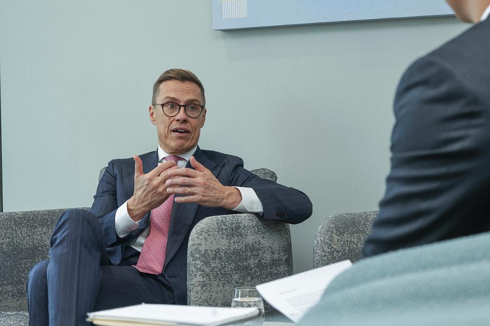 2024年10月29日,芬蘭總統(tǒng)斯圖布在北京接受新華社記者專訪。新華社記者 張玉薇 攝