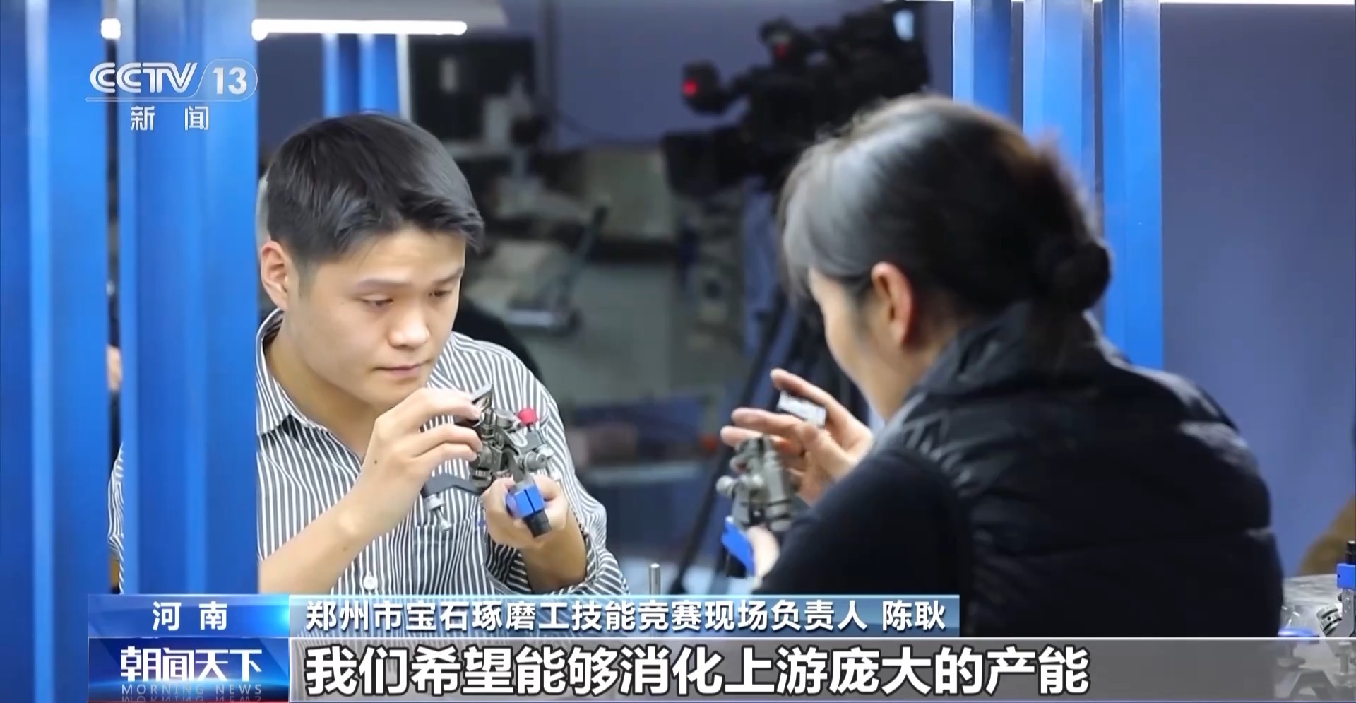 鄭州市寶石琢磨工技能競(jìng)賽現(xiàn)場(chǎng)負(fù)責(zé)人陳耿告訴記者,通過(guò)這個(gè)比賽,一方面為了培養(yǎng)產(chǎn)業(yè)工匠、產(chǎn)業(yè)大師;另外一方面,希望能夠消化上游龐大的產(chǎn)能。
