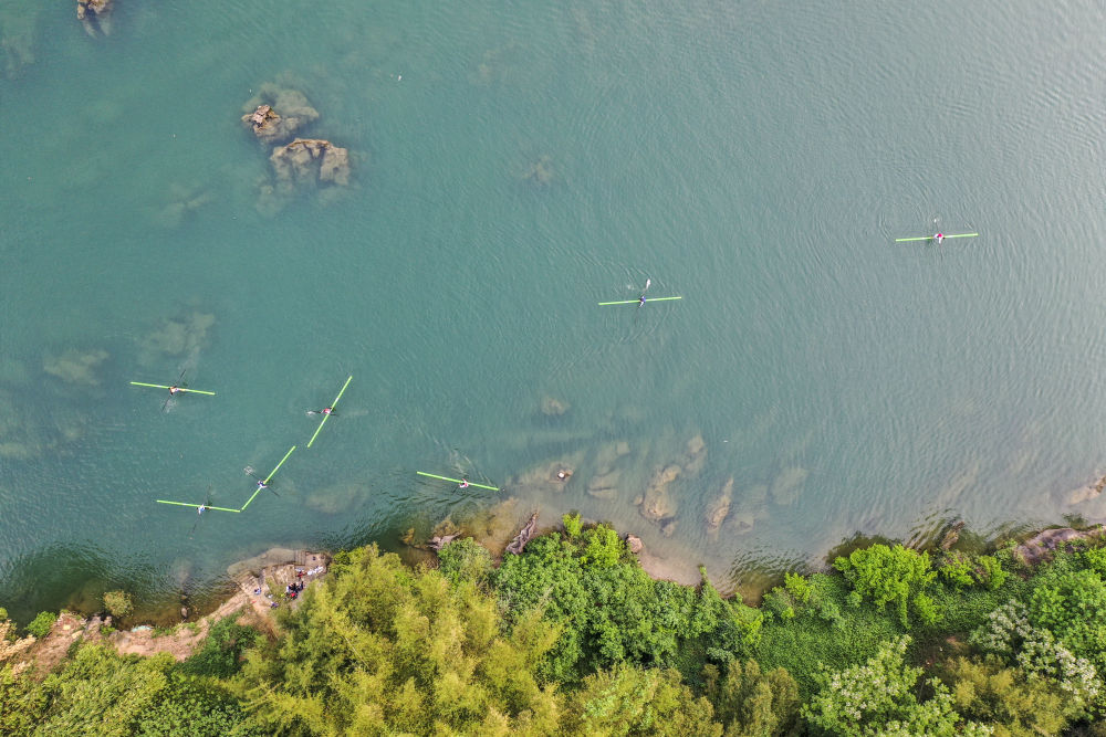 4月9日,河池學(xué)院獨(dú)竹漂隊(duì)的隊(duì)員們在自然河道里訓(xùn)練。