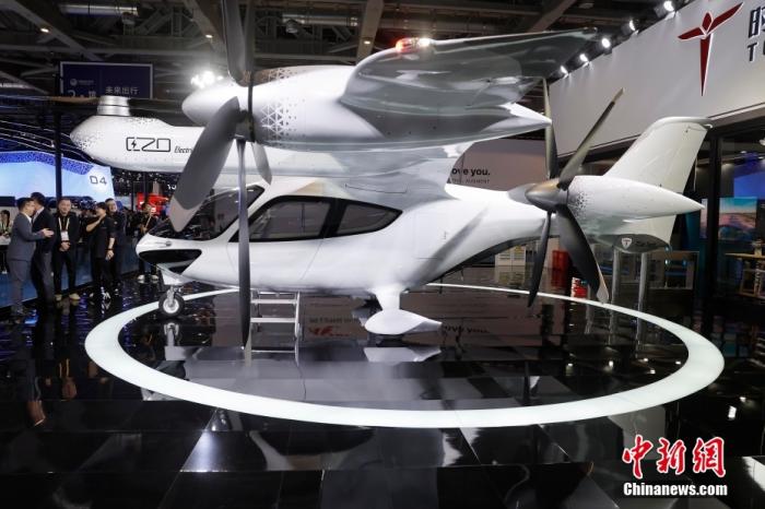 11月5日,在第七屆進(jìn)博會汽車展區(qū),上海時的科技公司展示E20傾轉(zhuǎn)旋翼載人電動垂直起降飛行器。第七屆中國國際進(jìn)口博覽會于11月5日至10日在上海舉行。中新社記者 殷立勤 攝