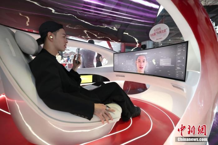 11月6日,參觀者在消費品展區(qū)資生堂展位“美時美刻”體驗艙檢測膚質(zhì)。第七屆中國國際進(jìn)口博覽會于11月5日至10日在上海舉行。中新社記者 富田 攝