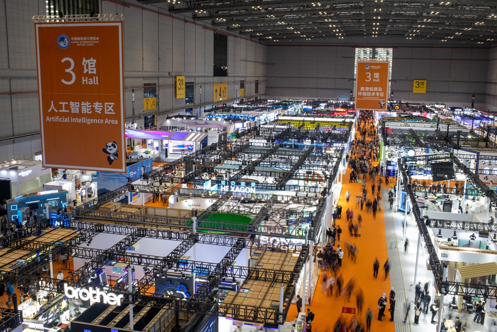 來自129個國家和地區(qū)的3496家展商匯聚上海,“四葉草”內(nèi)洽談歡、簽約忙;