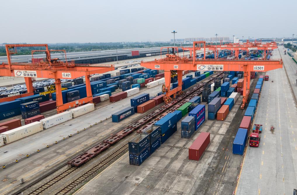 中國(guó)(四川)自由貿(mào)易試驗(yàn)區(qū)成都青白江鐵路港片區(qū)(2024年6月13日攝,無(wú)人機(jī)照片)。新華社記者 唐文豪 攝
