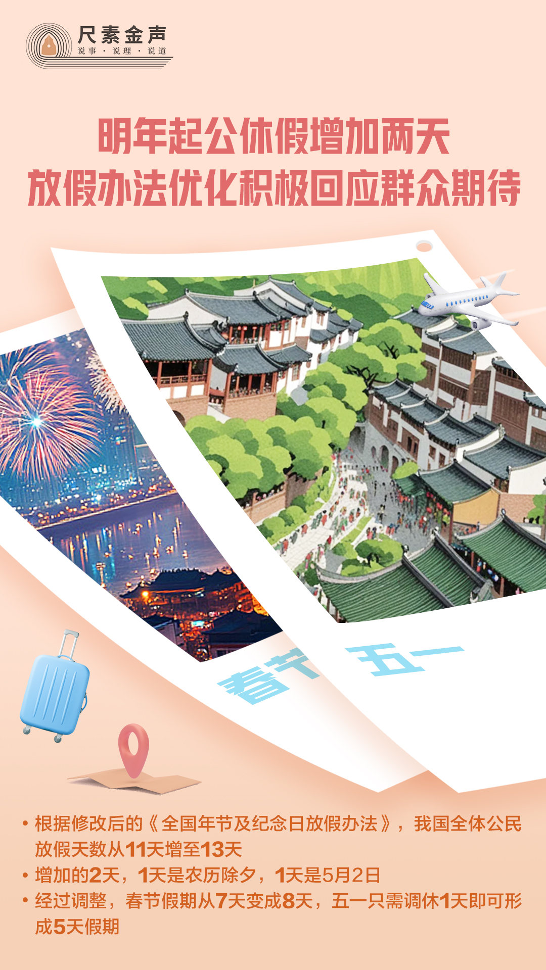 近日,國(guó)務(wù)院公布《關(guān)于修改<全國(guó)年節(jié)及紀(jì)念日放假辦法>的決定》,并公布2025年部分節(jié)假日安排?!懊磕甓喾艃商旒佟薄白ゾo買好機(jī)票準(zhǔn)備出游”……消息剛一發(fā)布,便受廣泛關(guān)注。