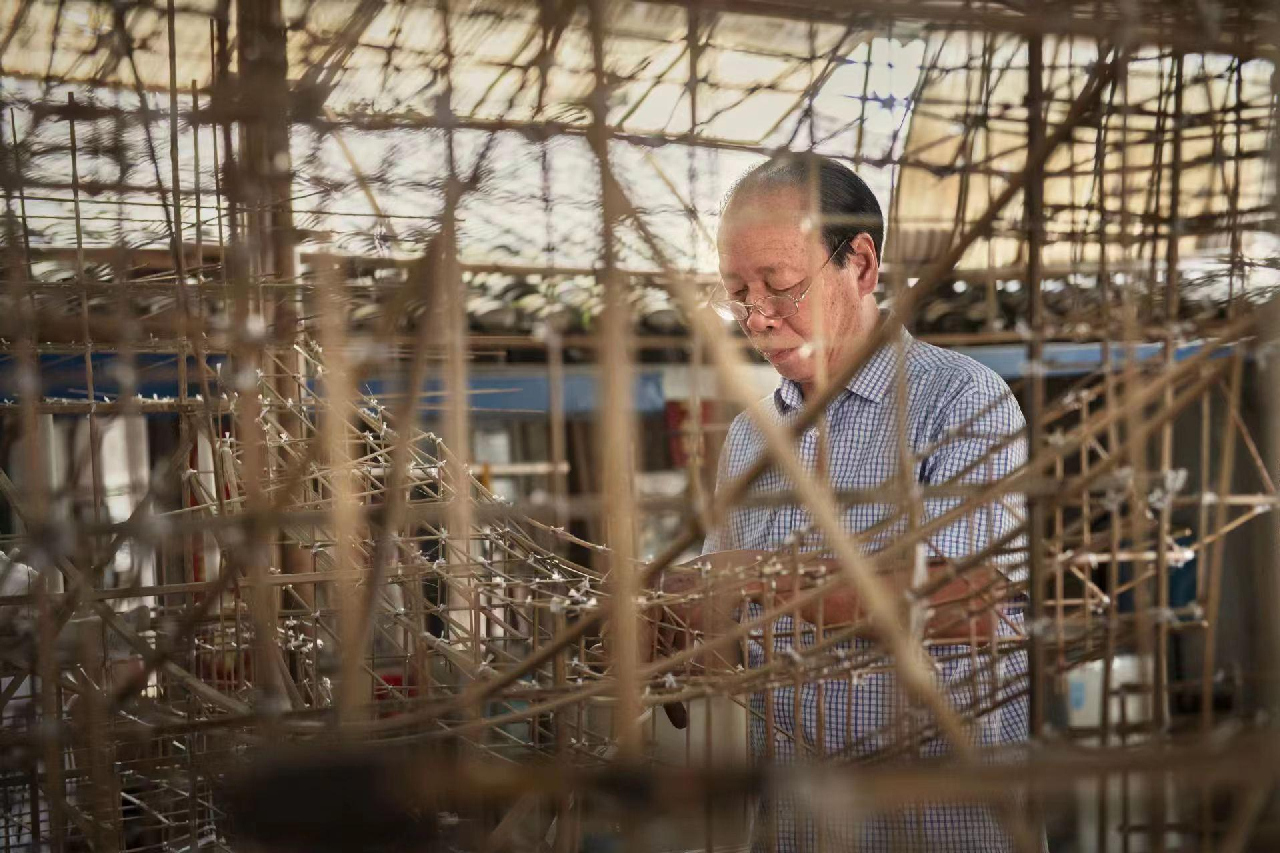 制作樂清首飾龍,需要集百般本領(lǐng)于一身,不僅要會(huì)雕刻、刻紙、紙?jiān)龋竟?、竹篾工、油漆工和鉗工等各類工種,也都能信手拈來。