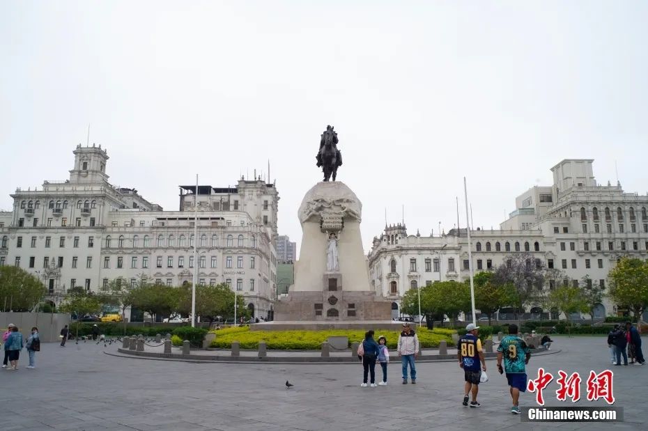 當(dāng)?shù)貢r間11月12日,秘魯首都利馬老城的圣馬丁廣場。中新社記者 盛佳鵬 攝