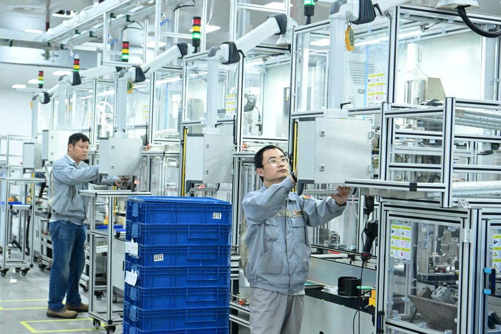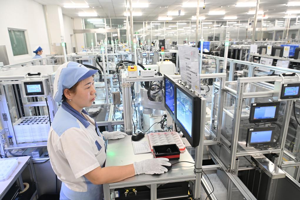 在江蘇省太倉港經(jīng)濟技術(shù)開發(fā)區(qū)博馬(蘇州)控股有限公司,生產(chǎn)技術(shù)人員在生產(chǎn)汽車渦輪增壓器產(chǎn)品(6月19日攝)。新華社發(fā)(計海新 攝)