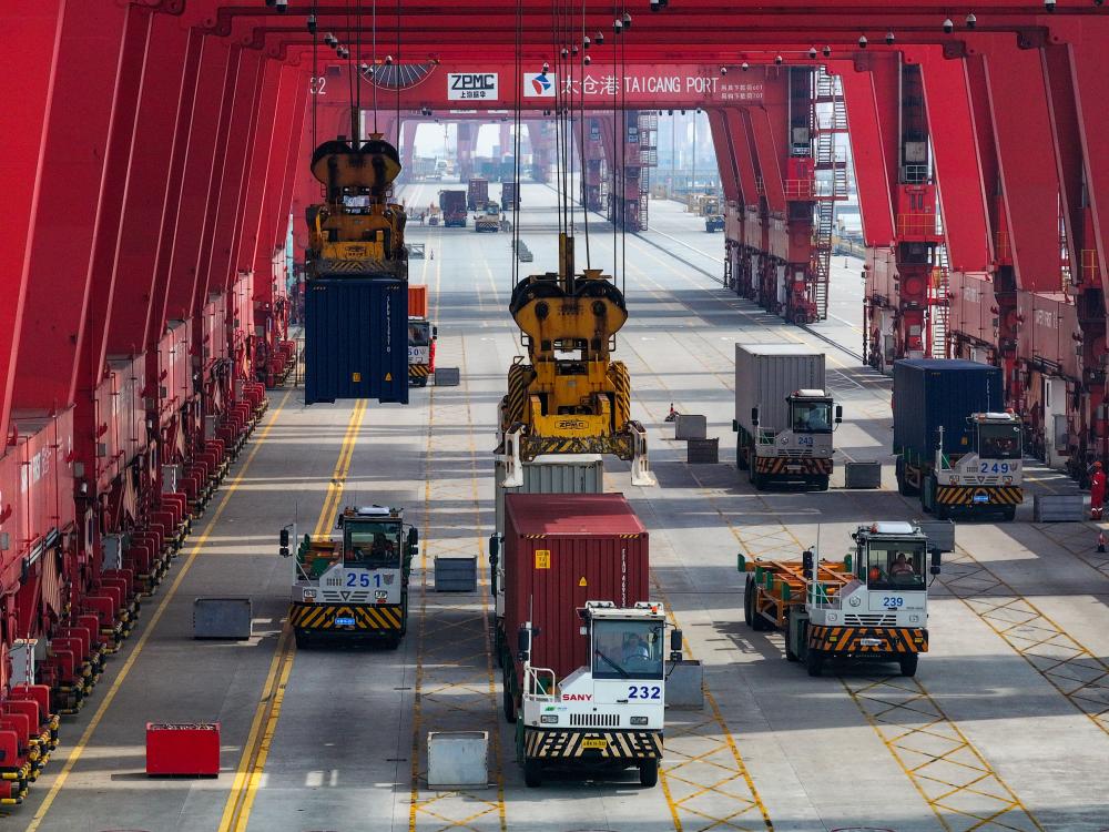 江蘇省蘇州港太倉港區(qū)集裝箱碼頭(無人機照片,10月10日攝)。新華社記者 李博 攝