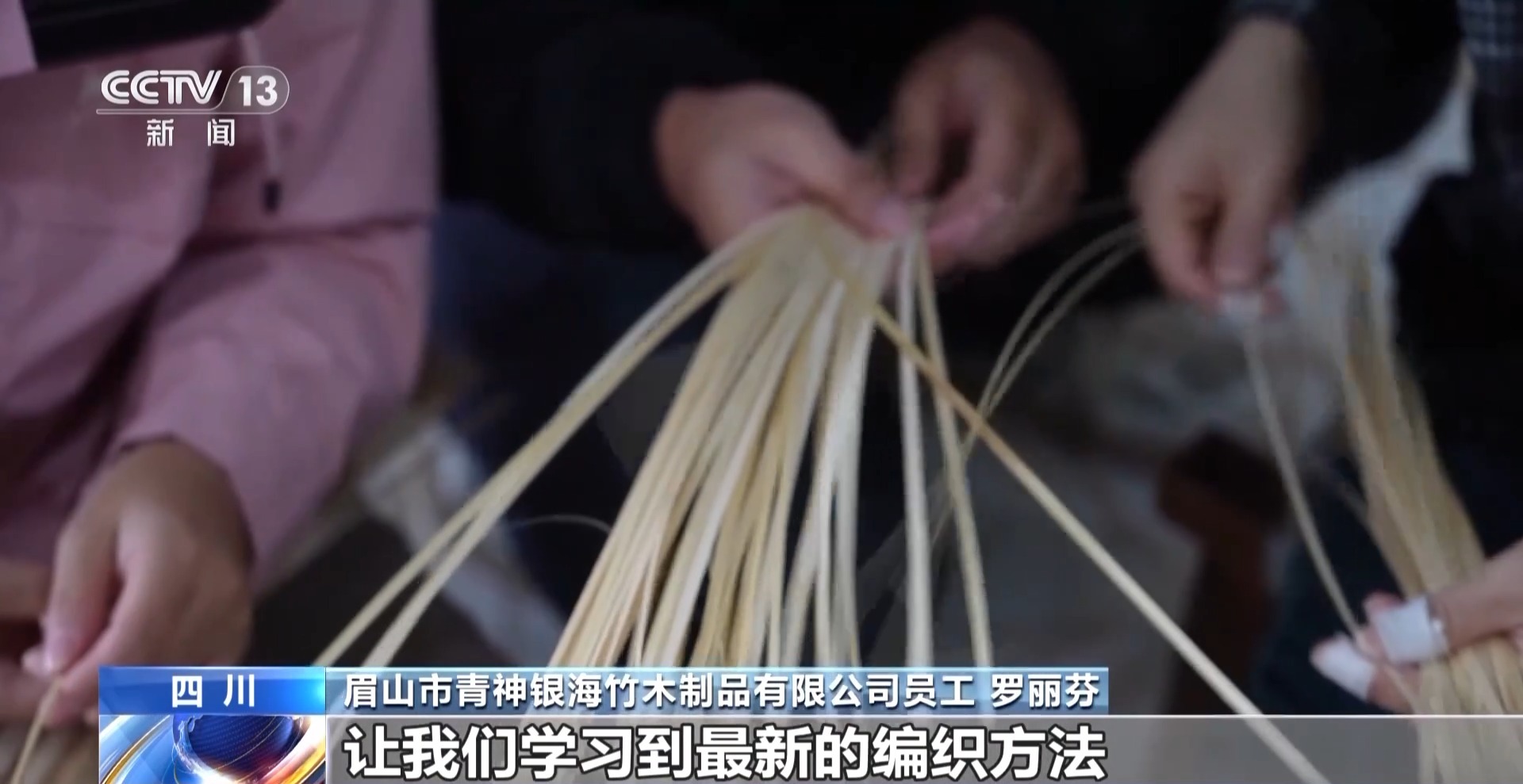 四川省青神銀海竹木制品有限公司員工 羅麗芬:收入每個(gè)月能掙4000多元,而且我們還有免費(fèi)的培訓(xùn),讓我們學(xué)習(xí)到最新的編織方法,比如人字形編織法、菊花形編織,都有不一樣的技巧。