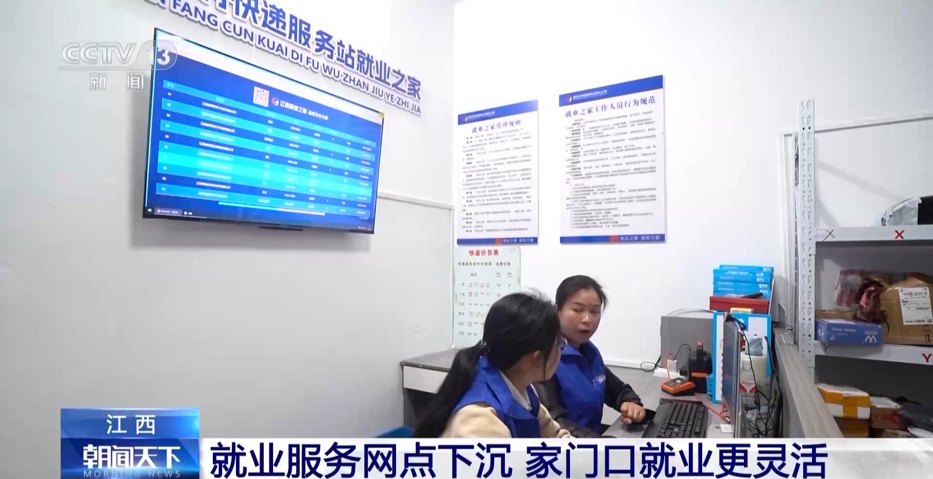 一大早,江西共青城甘露鎮(zhèn)的這個(gè)鄉(xiāng)村快遞站里就迎來(lái)不少村民。除了拿快遞、寄快遞以外,一些人是奔著招聘信息而來(lái)的。