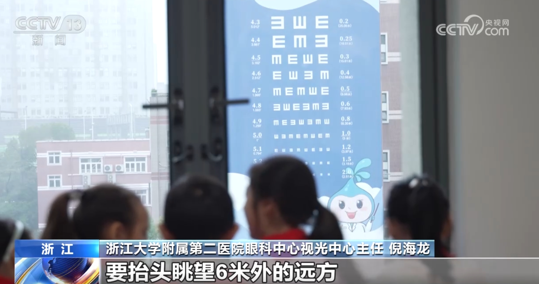 保護(hù)視力,既需要營(yíng)造有益視力的學(xué)習(xí)環(huán)境,還需要孩子們加強(qiáng)視力鍛煉。在浙江湖州南潯區(qū)善璉學(xué)校,每天上下午各一個(gè)時(shí)間段,學(xué)生們就會(huì)在老師的帶領(lǐng)下做“望遠(yuǎn)心遠(yuǎn)”課間操,由近而遠(yuǎn)觀察100米以外的物體,可以辨認(rèn)教學(xué)樓外墻的大幅視力表,也可以看看空中飛翔的小鳥,還可以數(shù)數(shù)樹上結(jié)的果子,通過遠(yuǎn)近交替聚焦,鍛煉遠(yuǎn)視能力,預(yù)防近視。