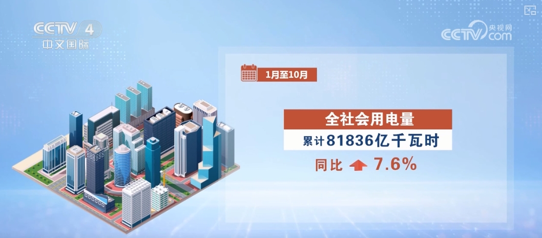 前10月全社會用電量同比增長7.6%