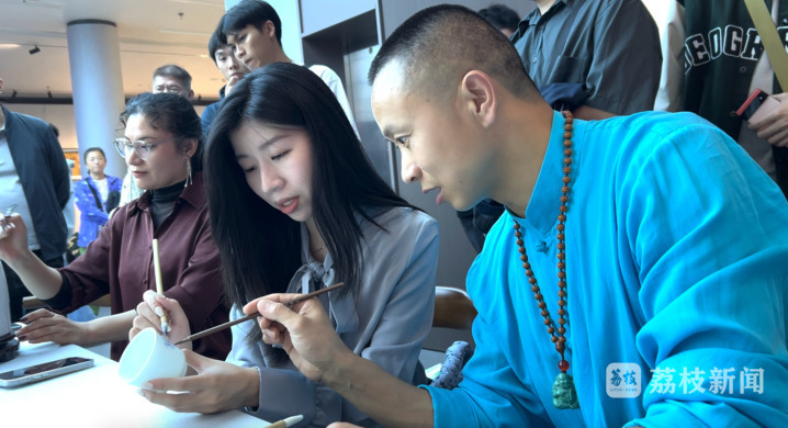 楊慶宜隨老師學(xué)習(xí)瓷畫創(chuàng)作