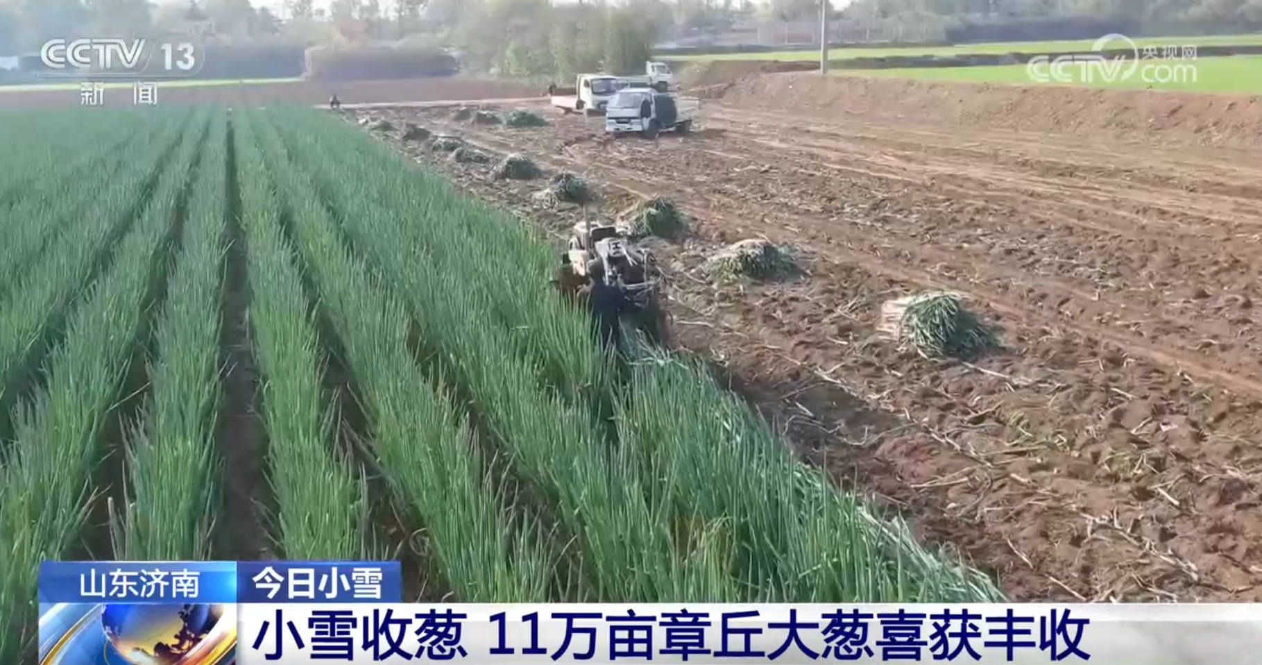 俗語說“小雪收蔥,不收就空”,小雪節(jié)氣是北方大蔥收獲的時候。在山東濟南,這里自古就有種植大蔥的傳統(tǒng),眼下11萬畝章丘大蔥喜獲豐收,村民們正忙著收蔥、賣蔥,種植基地里,大蔥收獲機的應用大大提高了采收效率。