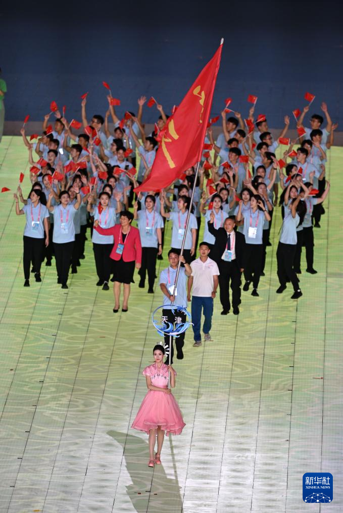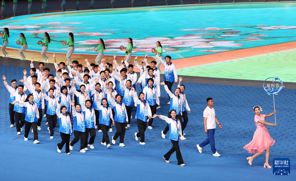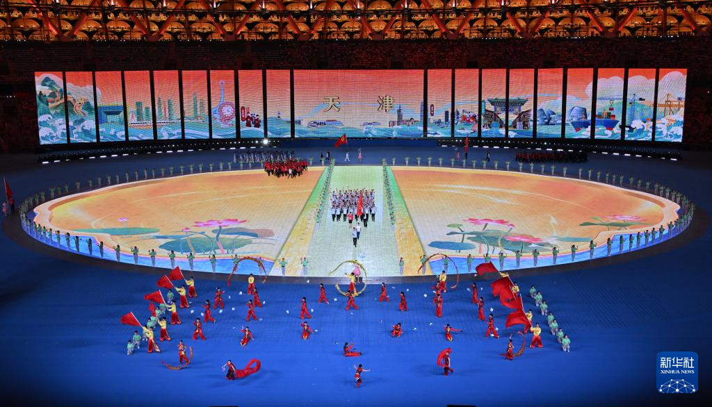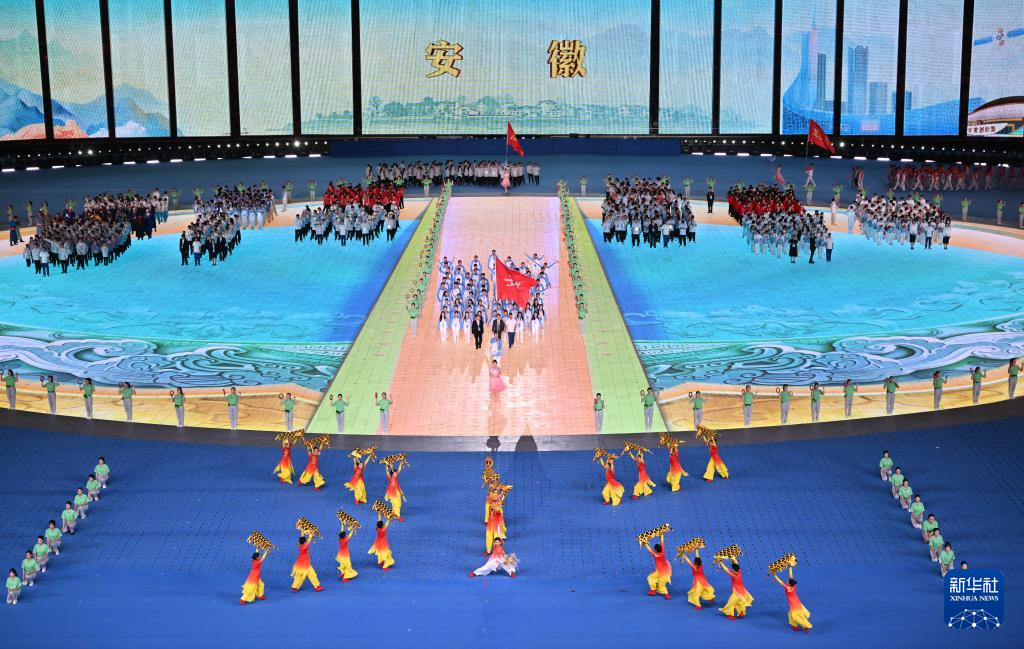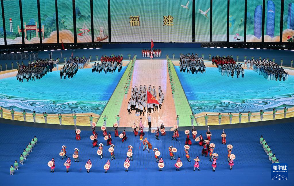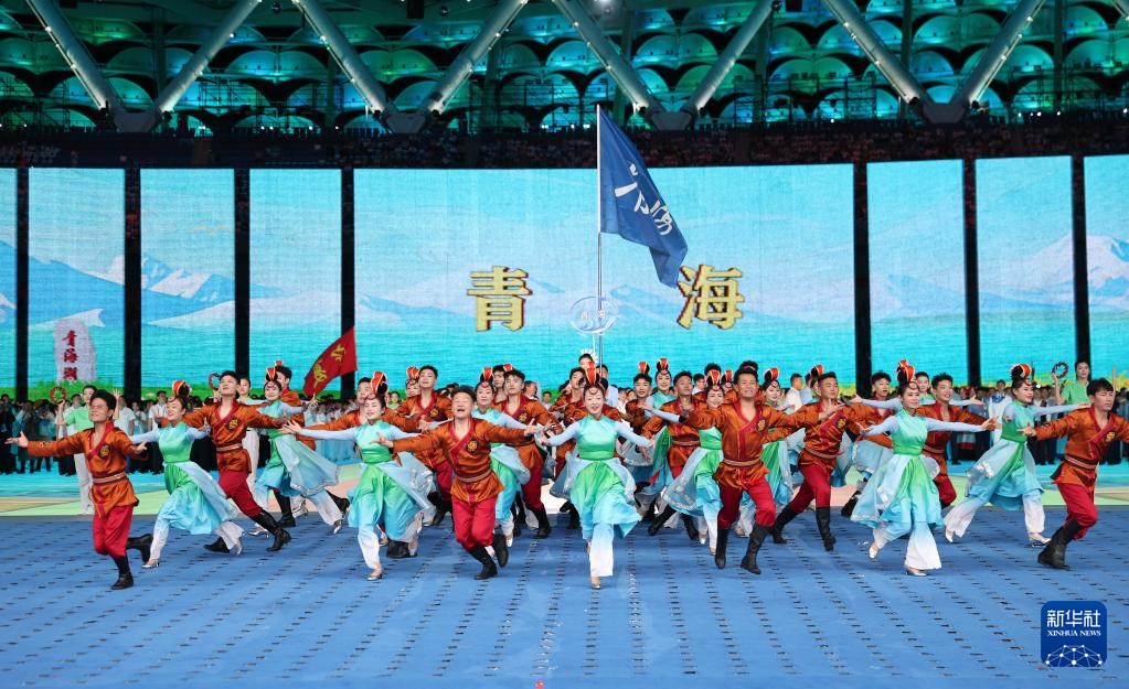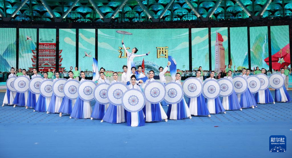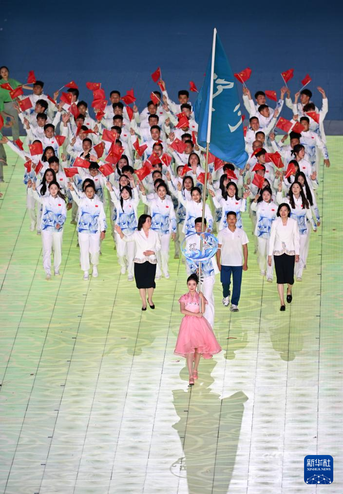 11月22日,開幕式現(xiàn)場升起中華人民共和國國旗、中華人民共和國少數(shù)民族傳統(tǒng)體育運動會會旗和中華人民共和國第十二屆少數(shù)民族傳統(tǒng)體育運動會會旗。