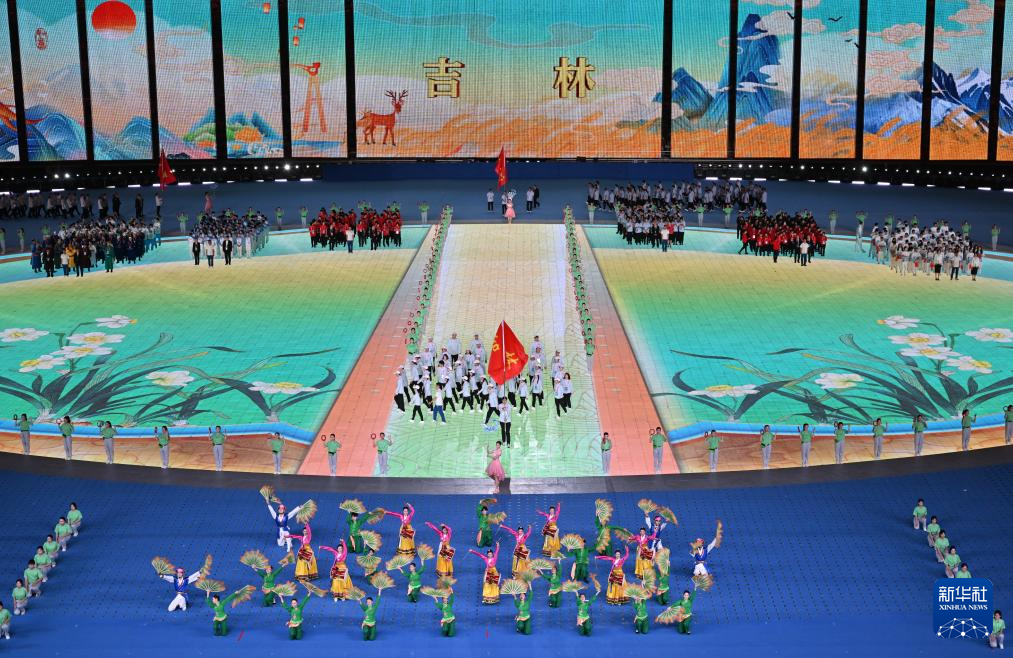 11月22日,中華人民共和國第十二屆少數(shù)民族傳統(tǒng)體育運動會會旗方陣在開幕式上入場。