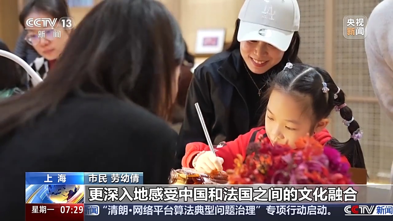 上海市民 勞幼倩:這邊有很多體驗(yàn)區(qū)域,讓小朋友也有動(dòng)手能力,更深入地感受中國和法國之間的文化融合。
