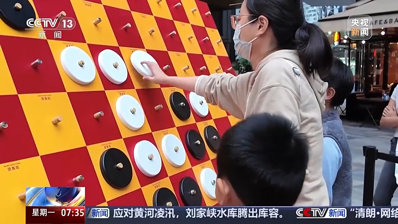 而上海的另一處熱門打卡地——“鴻壽坊”,則用煙火氣吸引著市民。在中心廣場上,一場“街坊擂臺(tái)”正在舉行。飛行棋、呼啦圈,簡單有趣的運(yùn)動(dòng)吸引了許多參與者。