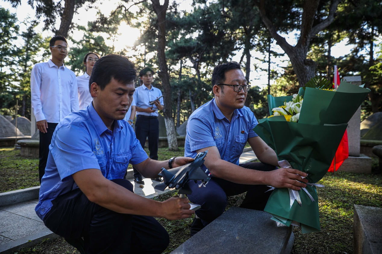 2022年9月17日,第九批在韓志愿軍烈士遺骸回國的第二天,中國航空工業(yè)集團沈飛公司青年技術工人方文墨和同事來到沈陽抗美援朝烈士陵園祭掃。
