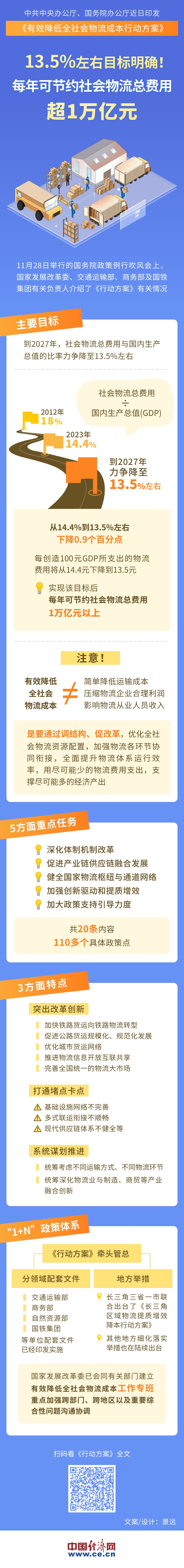 【圖解】13.5%左右目標(biāo)明確!每年可節(jié)約社會(huì)物流總費(fèi)用超1萬億元