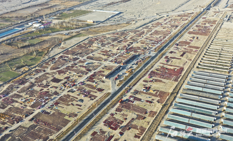 315國道策勒縣段兩側(cè)的千畝紅棗晾曬場(11月29日無人機攝)。