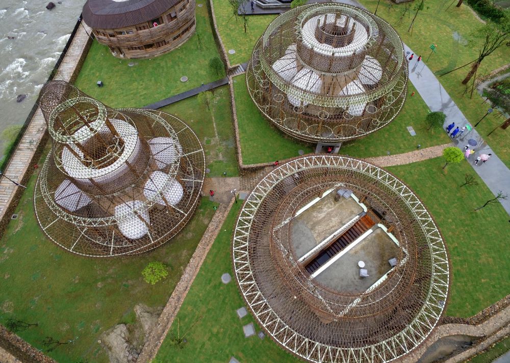 緊接著,設(shè)計師們聯(lián)手用竹子打造了一個充滿設(shè)計感的竹藝村落——龍泉國際竹建筑文創(chuàng)生活村落。