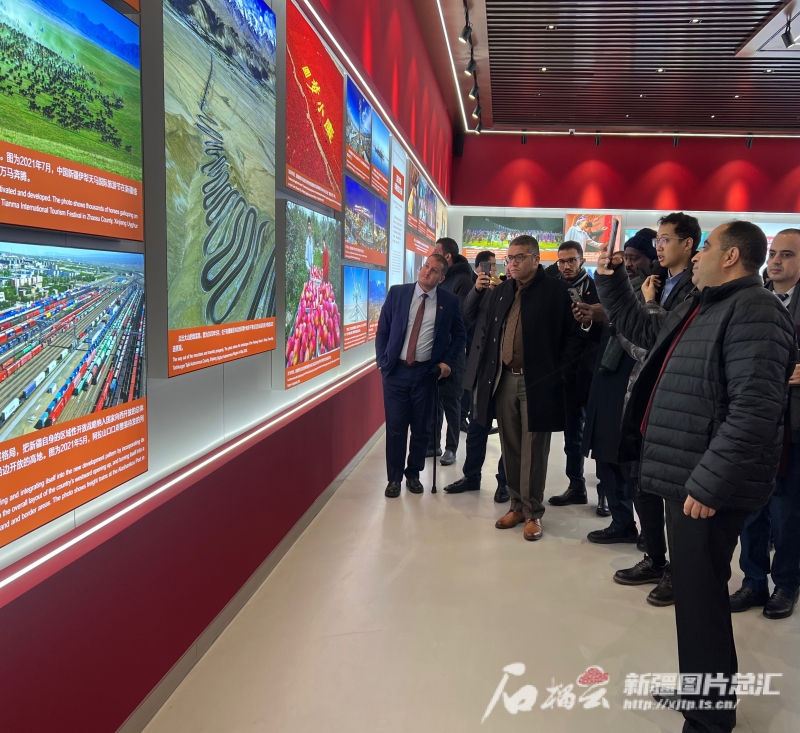 11月29日,考察團(tuán)一行在“新疆的反恐和去極端化斗爭(zhēng)主題展”參觀。石榴云/新疆日?qǐng)?bào)記者 米日古力·吾攝