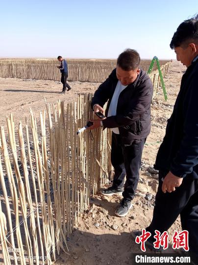 為此,一旦發(fā)現(xiàn)沙障出現(xiàn)破損,伊卜拉伊木和工友們就要及時(shí)維修。