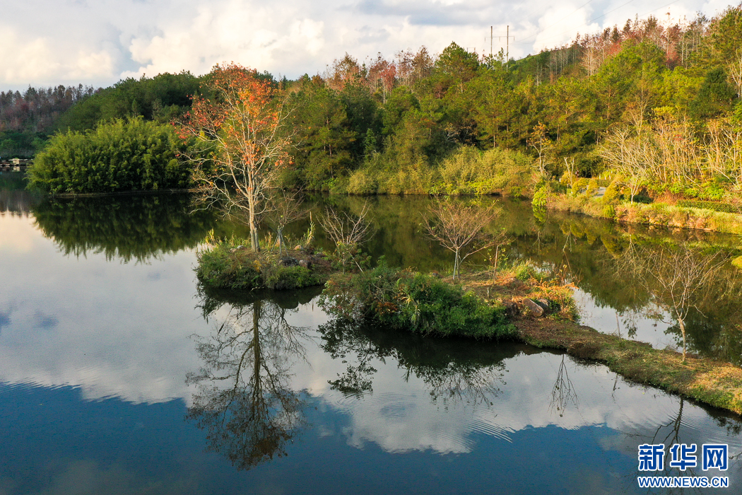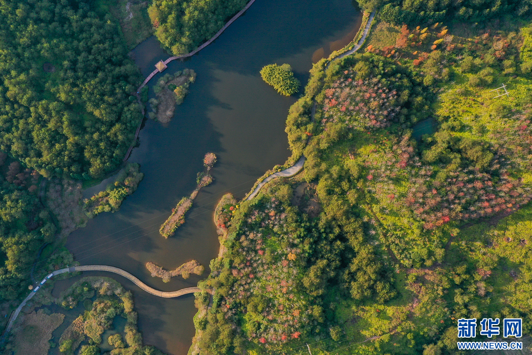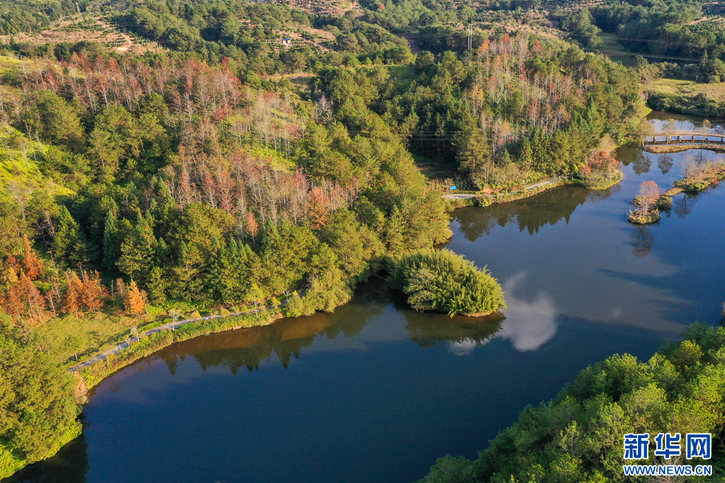 長汀縣水土保持科教園地處河田鎮(zhèn)露湖村,是福建省面積最大的水土保持科教基地(無人機(jī)照片)。新華網(wǎng) 肖和勇 攝