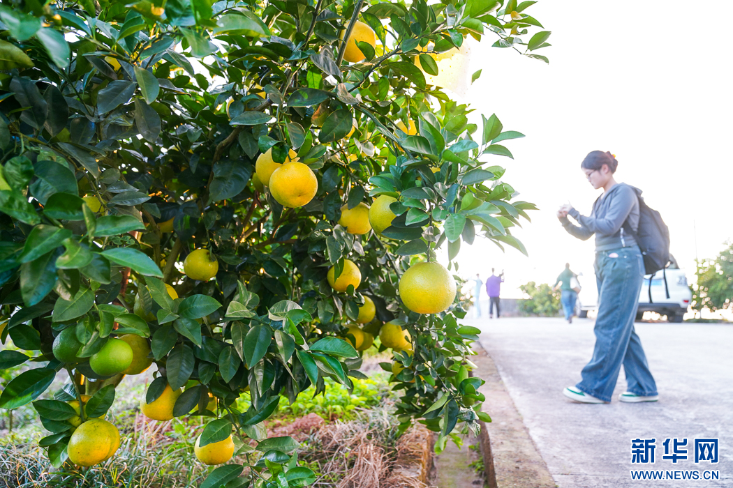 長汀縣三洲鎮(zhèn)豐盈美麗生態(tài)農(nóng)場(chǎng),豐收的果實(shí)掛滿枝頭。新華網(wǎng) 肖和勇 攝