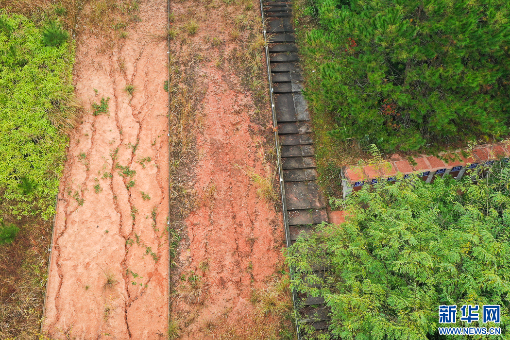 長汀縣水土保持科教園里的崩崗實(shí)驗(yàn)對(duì)照區(qū)(無人機(jī)照片)。新華網(wǎng) 肖和勇 攝