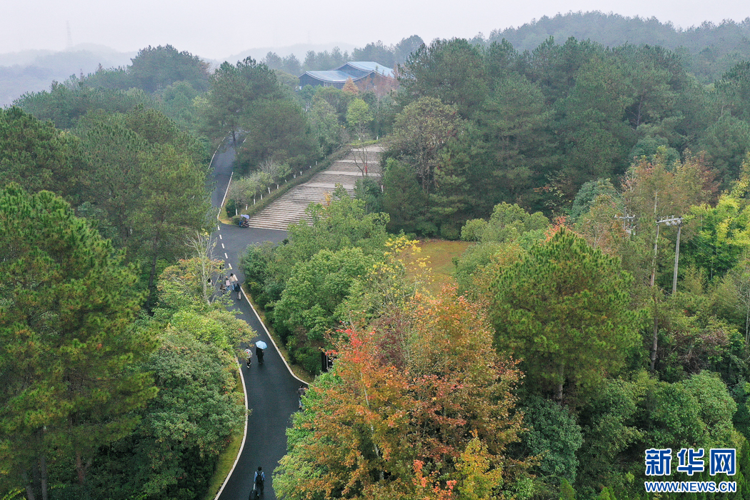這是長汀縣水土保持科教園里的“中國·長汀水土保持科教館”,這個(gè)科教園是福建省面積最大的水土保持科教基地(無人機(jī)照片)。新華網(wǎng) 肖和勇 攝