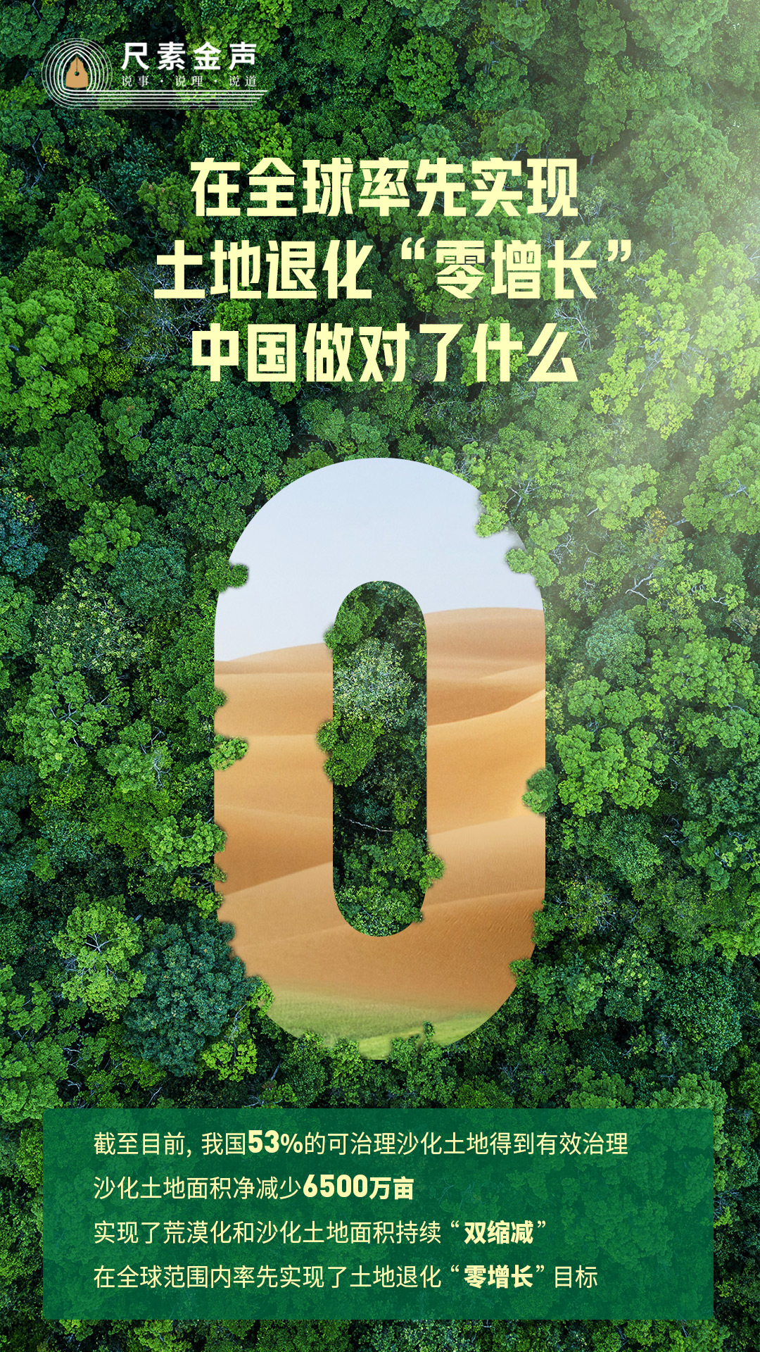 最新數(shù)據(jù)顯示,截至目前,我國(guó)53%的可治理沙化土地得到有效治理,沙化土地面積凈減少6500萬(wàn)畝,實(shí)現(xiàn)了荒漠化和沙化土地面積持續(xù)“雙縮減”,在全球范圍內(nèi)率先實(shí)現(xiàn)了土地退化“零增長(zhǎng)”目標(biāo)。