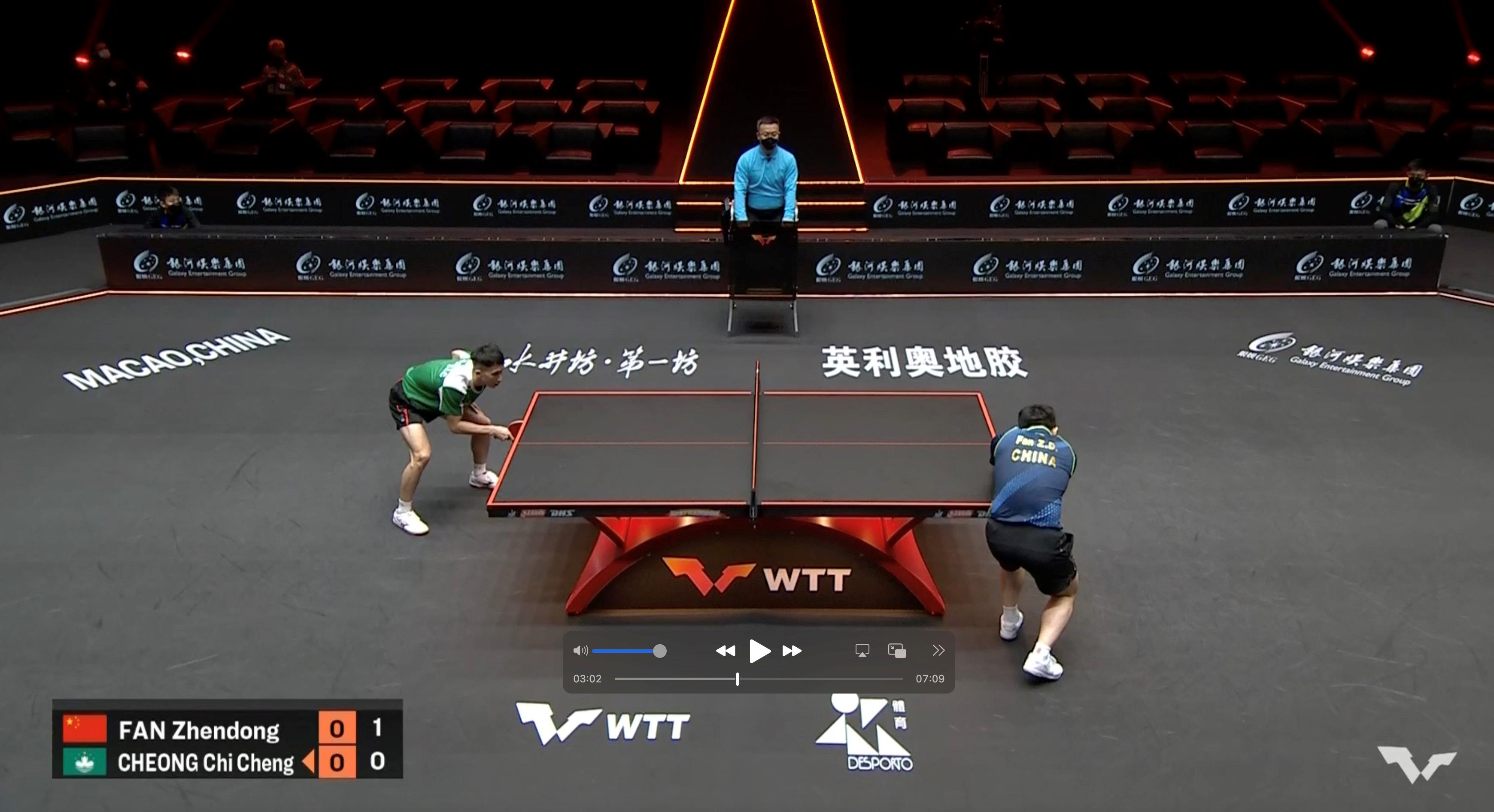 2022年WTT澳門(mén)冠軍賽男單八分之一決賽張子澄與樊振東“交手”