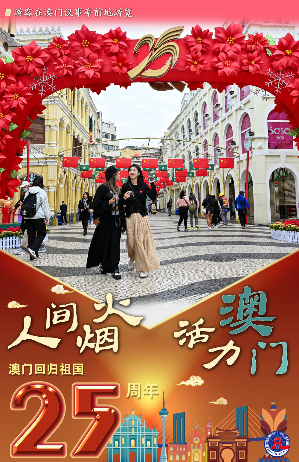 25年來,澳門經(jīng)濟快速增長、民生持續(xù)改善、社會和諧穩(wěn)定、國際影響力顯著提升。如今的澳門精彩紛呈,傳統(tǒng)融入現(xiàn)代,澳門的街道“充滿了活力與生機”。作為獨特的旅游目的地,澳門大型盛事、表演以及大大小小的節(jié)慶活動貫穿整年,活潑的“人間煙火氣”格外吸引游客,他們在這里品嘗全球美食、欣賞優(yōu)秀藝術(shù),一起體驗“最是動聽凡人歌”的活力澳門。