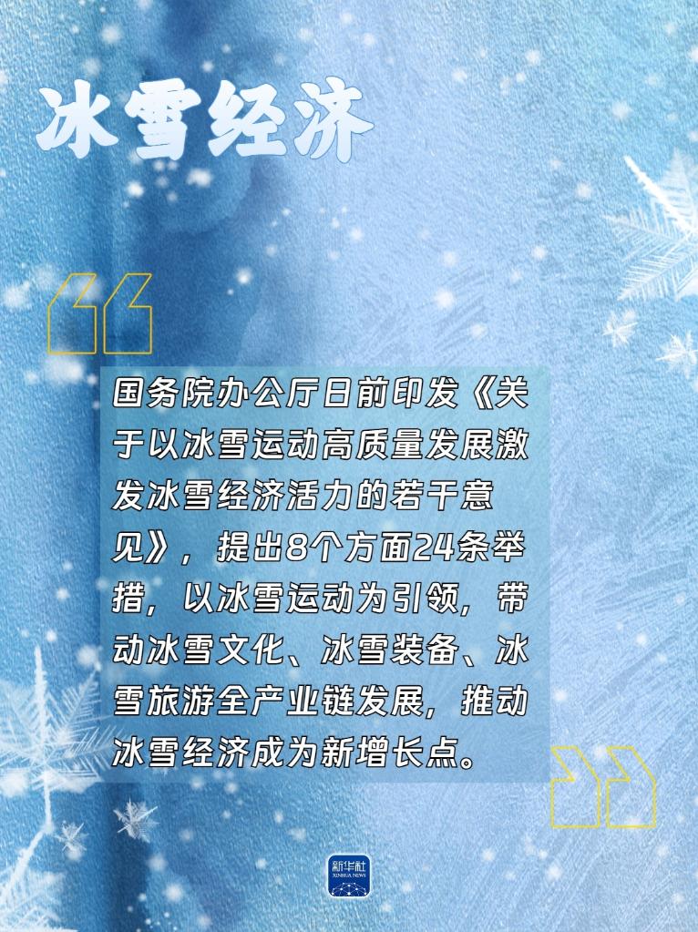 【解析】國務(wù)院辦公廳日前印發(fā)《關(guān)于以冰雪運動高質(zhì)量發(fā)展激發(fā)冰雪經(jīng)濟(jì)活力的若干意見》,提出8個方面24條舉措,以冰雪運動為引領(lǐng),推動冰雪經(jīng)濟(jì)成為新增長點。明確到2027年冰雪經(jīng)濟(jì)總規(guī)模達(dá)到1.2萬億元,到2030年冰雪經(jīng)濟(jì)總規(guī)模達(dá)到1.5萬億元。