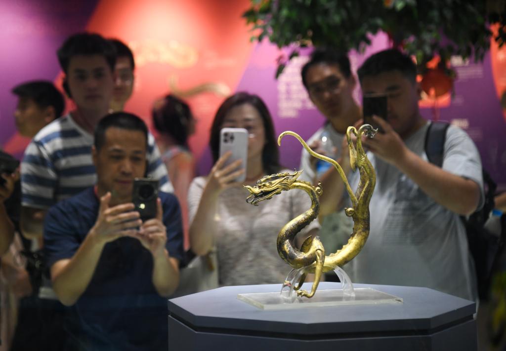 游客在陜西歷史博物館參觀、拍照(2024年8月6日攝)。 新華社記者 張博文 攝